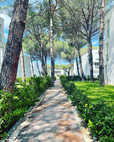 Der Komplex befindet sich im hinteren Bereich des Resorts und bietet fast durchgängig einen schattigen und somit natürlichen Schutz durch die heißen Sommertage. Sollten die klimafreundlichen Pinienbäume einmal nicht ausreichen, so hilft die zuverlässige Klimaanlage in den Ferienwohnungen.